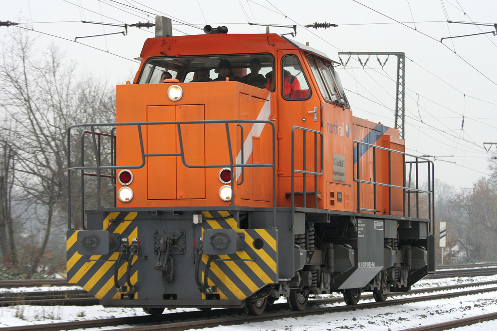 Die 274 104-5 (98 90 0274 104-5 D-KIEL) der CC-Logistik Rangierdienstleister durchfährt Duisburg Neudorf Lz und stark besetzt am 07.12.2010
