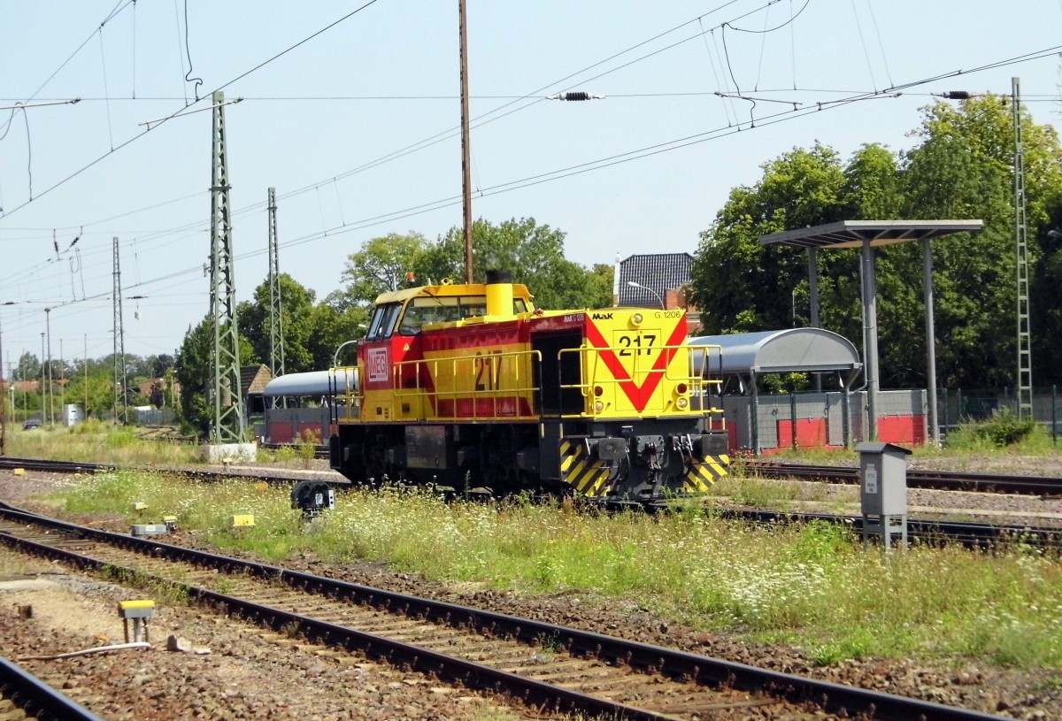 Am 07.08.2015 Rangierfahrt von der 275 217-6 von der MEG in Stendal .