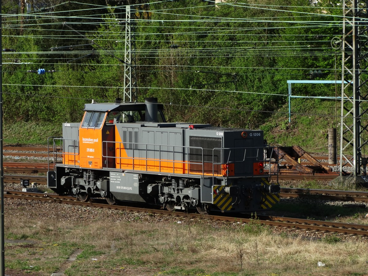 Locomotives Pool G1206 BB (275 805-0) am 15.04.15 in Heidelberg von einer Brücke aus fotografiert