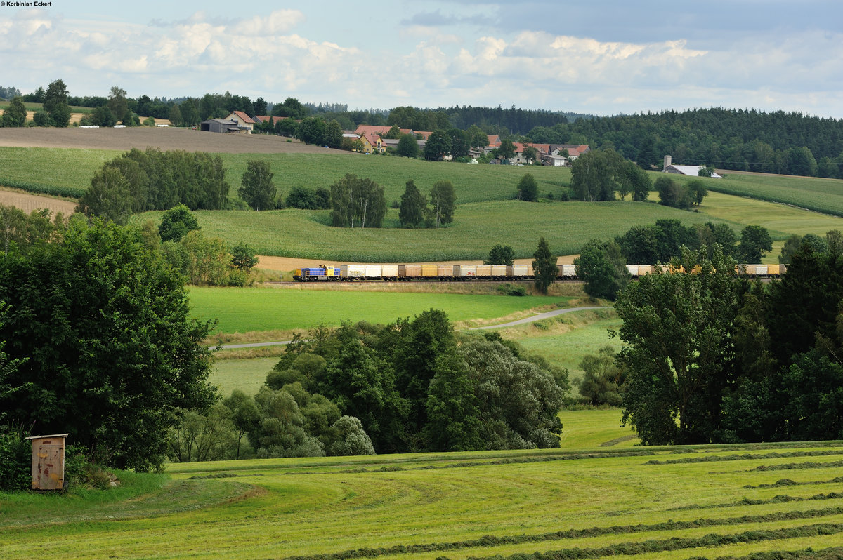 277 003-0 mit dem leeren Hackschnitzelzug aus Regensburg nach Wiesau bei Naabdemenreuth, 30.07.2016
