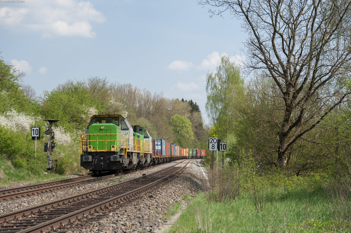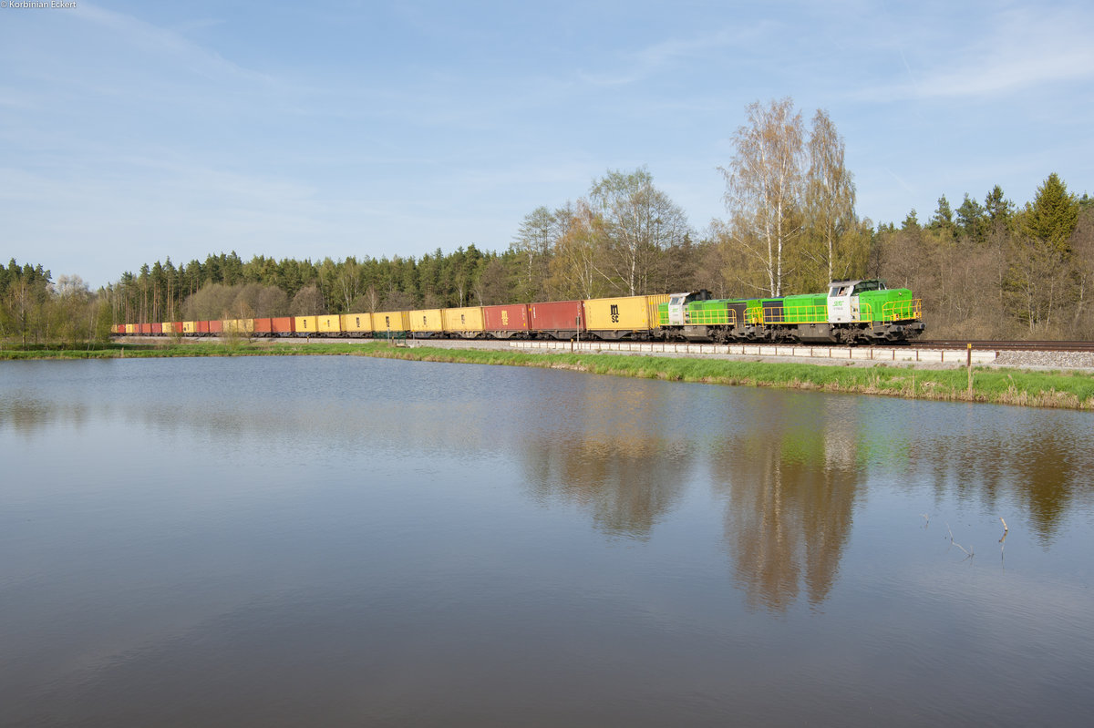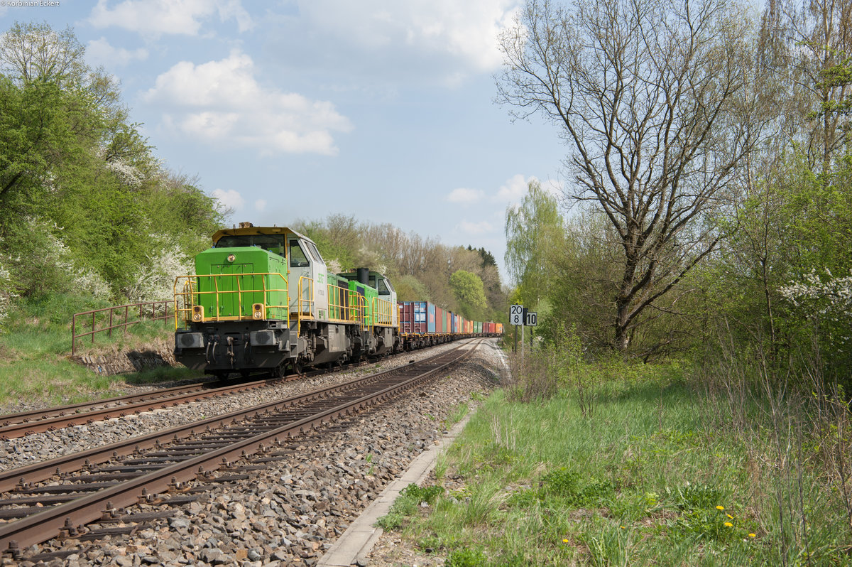 V1700.02 (277 003-0) und V1700.03 (277 004-9) mit dem Containerzug von Hamburg nach Wiesau bei Reuth, 22.04.2018