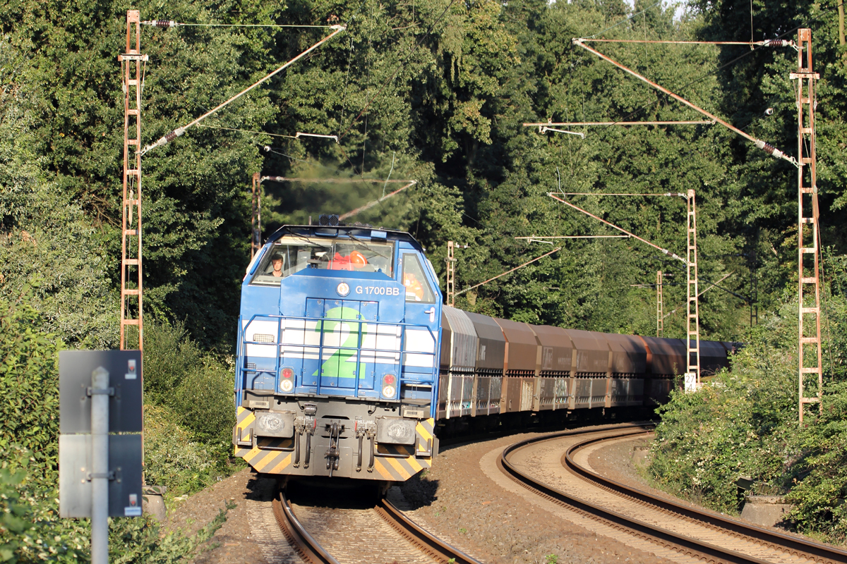 Totgesagte leben länger. Obwohl im letzten Fahrplanwechsel di n-Wagen aus dem regulären Umlauf ausgeschieden sind fahren sie hin und wieder immer noch auf einigen Linien. Hier schiebt 111 118-6 den n-Wagen Park als RE8 Verstärker während 277 803-3 alias NIAG2 mit Braunkohlestaubwagen Richtung Rommerskirchen fährt.