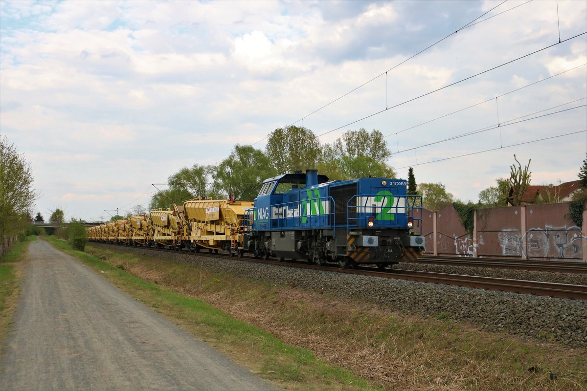NIAG Vossloh G1700 277 803-3 und Wiebe Planumsverbesserungsmaschine RPM 2002 am 12.04.20 in Rodenbach