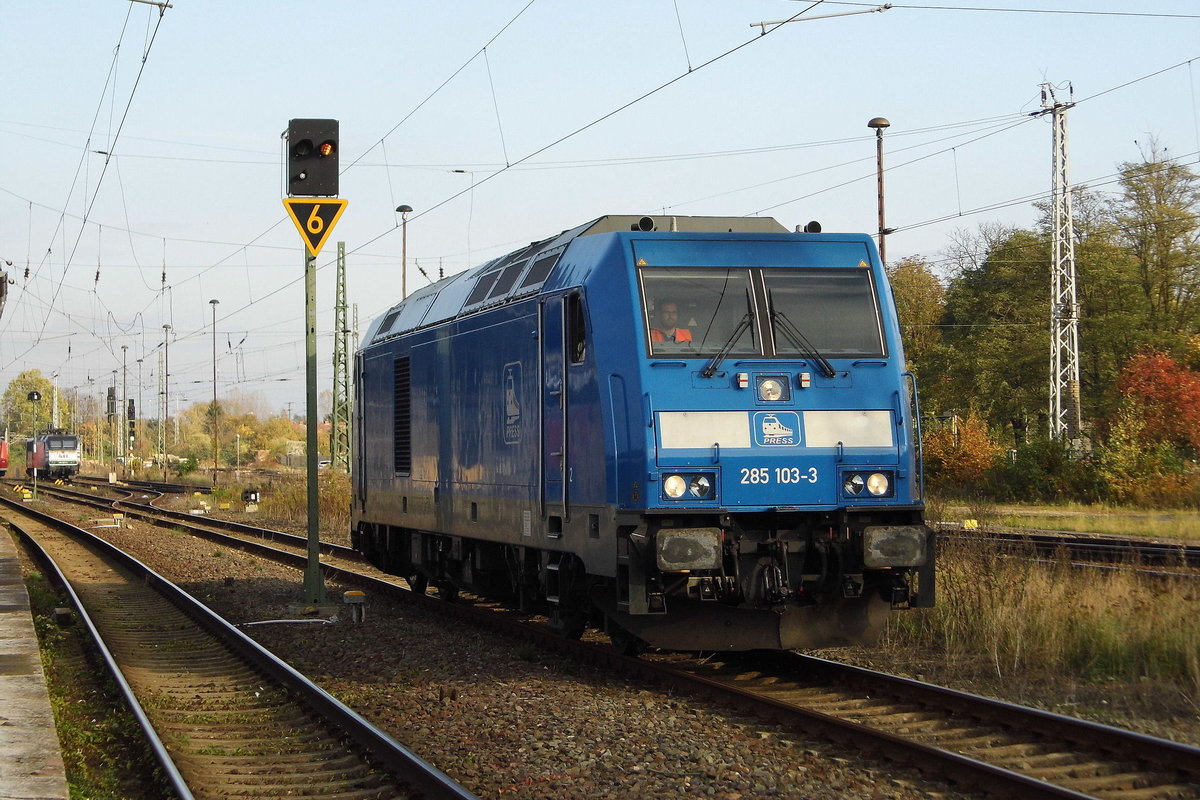 Am 14.10.2017 Rangierfahrt von der 285 103-3 von der PRESS in Stendal .