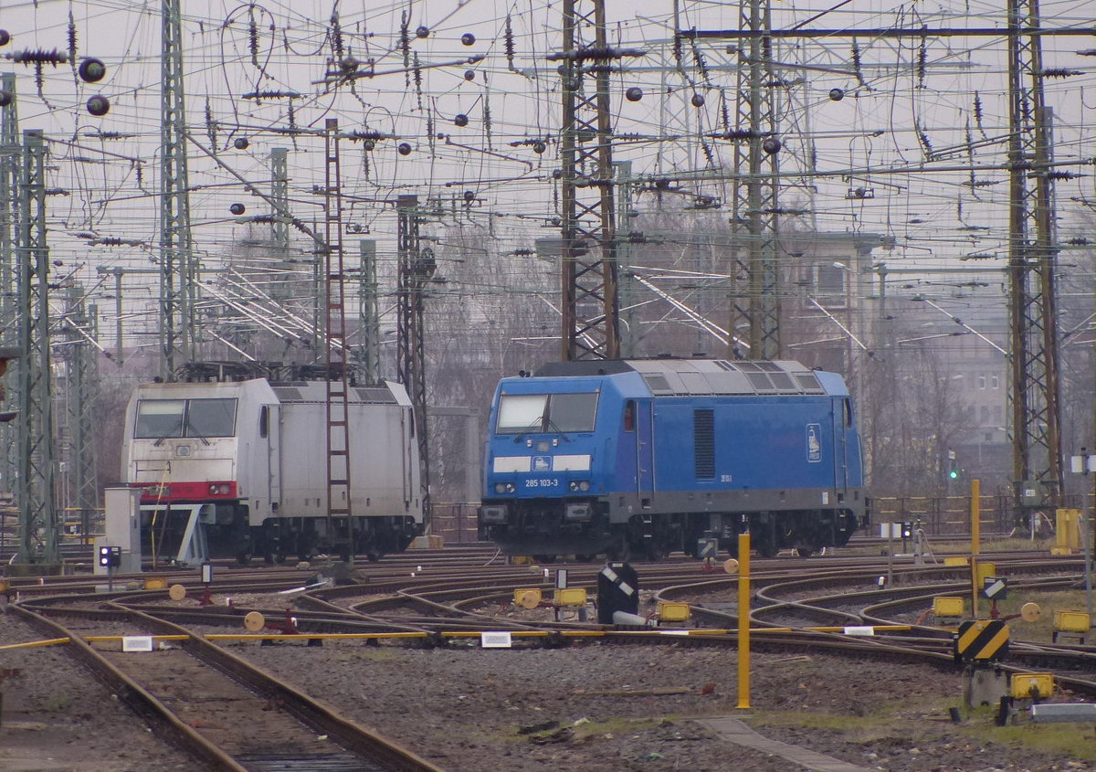 PRESS 285 103-3 (92 88 0076 003-7 B-BTK) als Abschlepplok für  LVZ: S 4 Horrortrip  mit der S4 1442 208 die in einem Stromlosen Abschnitt liegen geblieben war. Hier im Leipzig Hbf  22.10.2016