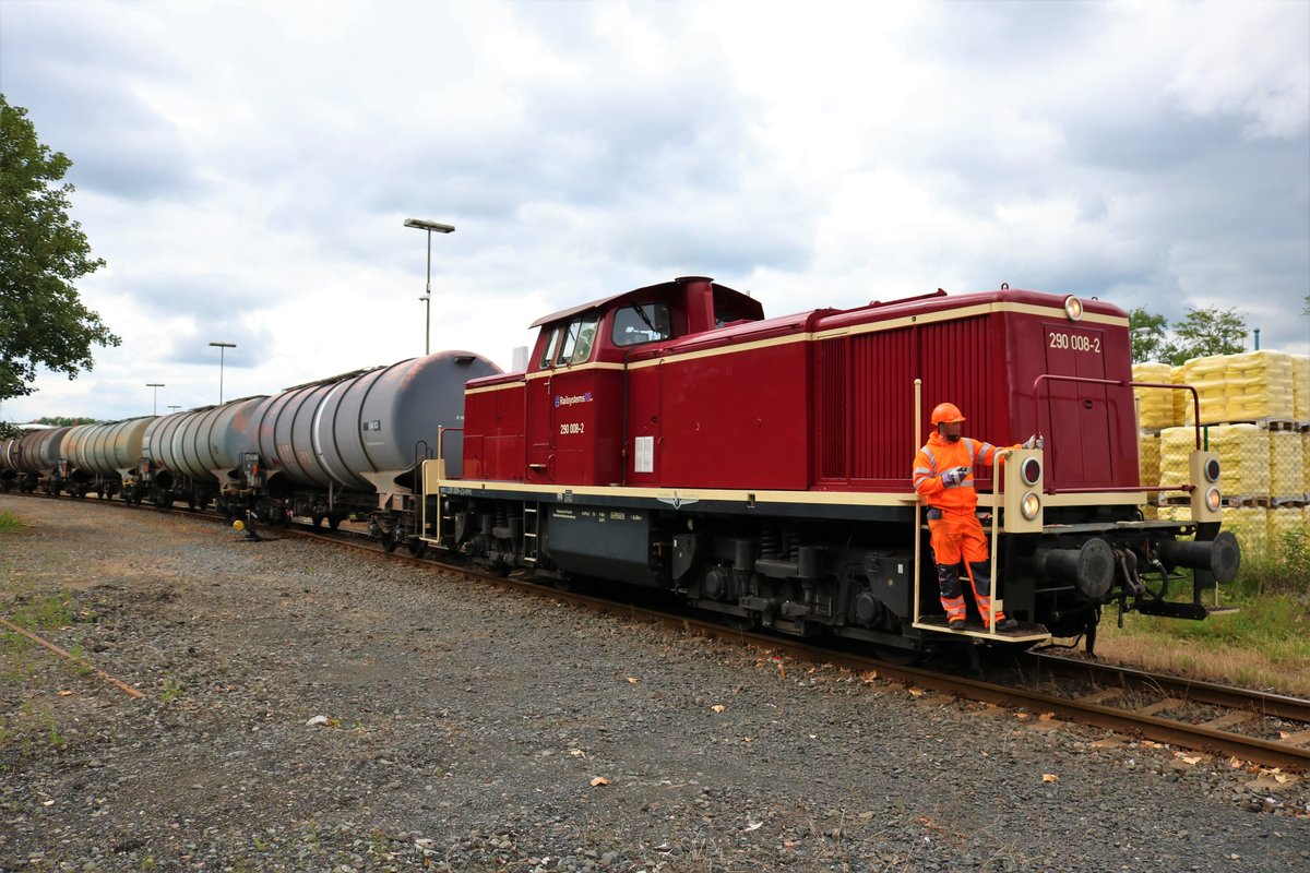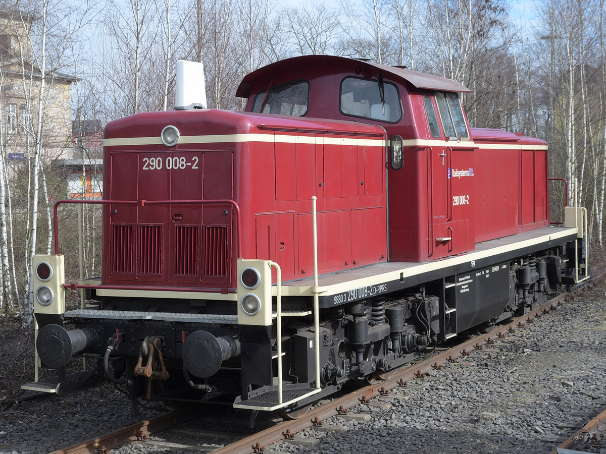 Am 27.02.2016 stand die 290 008-2 von Railsystem RP in Glauchau und wartet auf neue Aufgaben. Im Hintergrund erkennt man das Containerterminal von Glauchau. Matthias Hartmann