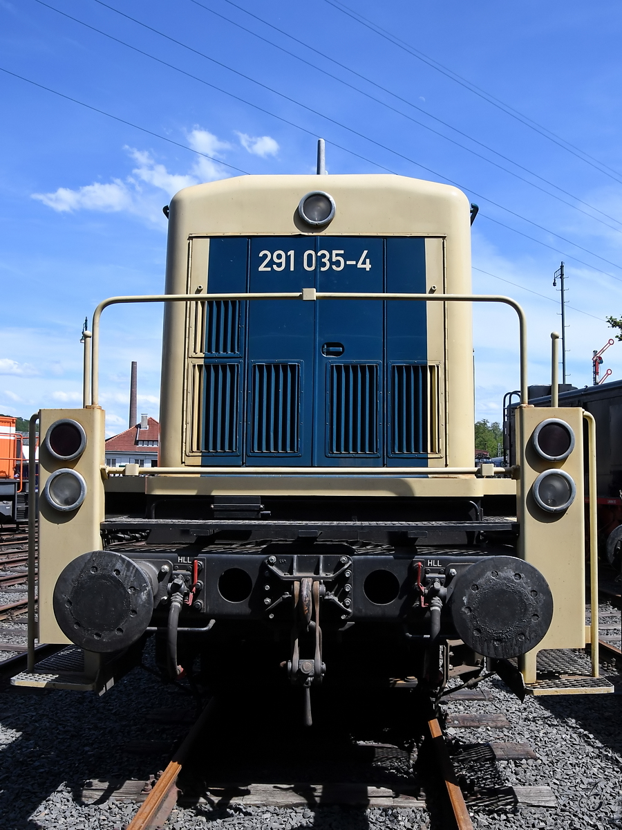 Die Diesellokomotive 291 035-4 war Anfang Juni 2019 im Eisenbahnmuseum Bochum ausgestellt.
