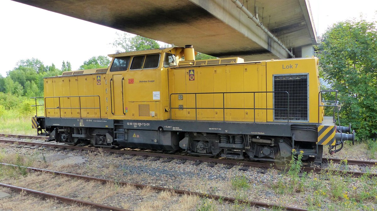 Bahnbaugruppe LOK 7, 293 009-7  ( 9280 1293 009-7 D-DB ) beim pausieren in Gera am 23.7.2022