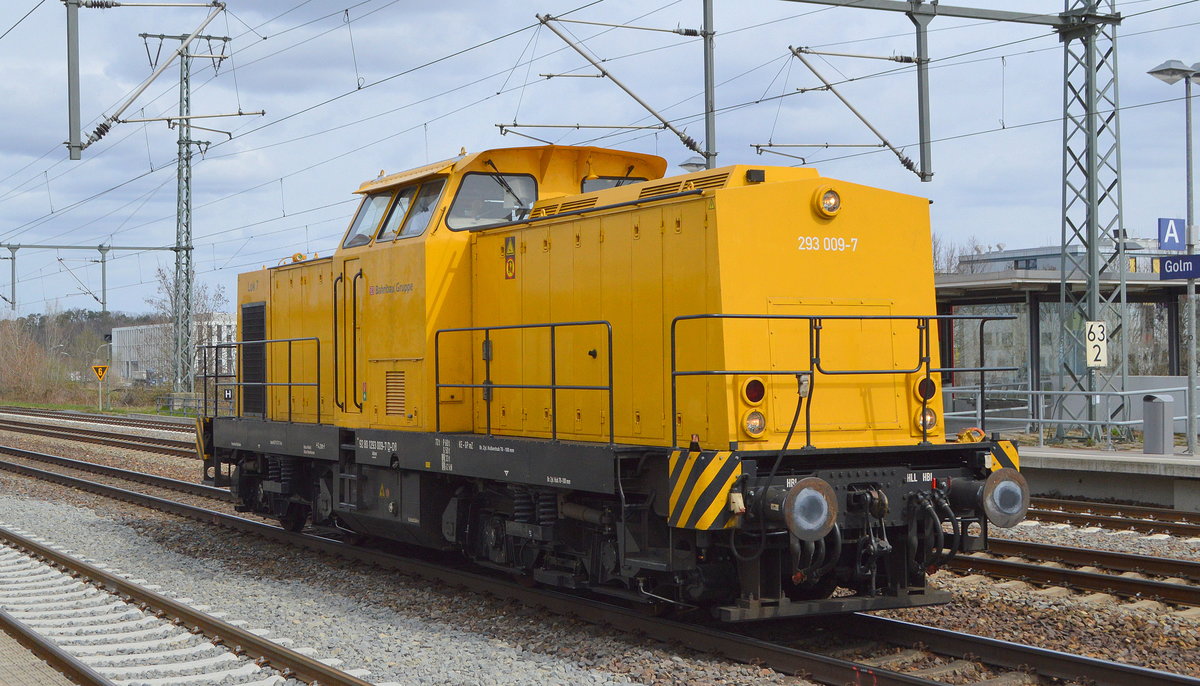 DB Bahnbau Gruppe GmbH, Berlin mit  293 009-7  [NVR-Nummer: 92 80 1293 009-7 D-DB] am 15.04.21 Durchfahrt Bf. Golm (Potsdam).