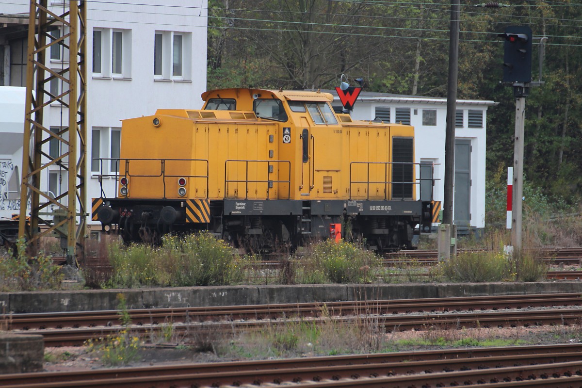 Die SGL V150.4 (293 510-4) steht am 26.10.2014 zur Sonntagsruhe in Zwickau. Aufnahme Endstand vom Bahnsteigende 1 aus.