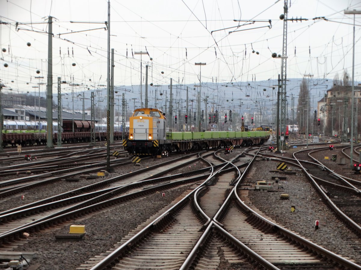 Schienen Güterlogistik V150.04 (293 510-4) am 04.03.17 beim Rangieren in Mainz Hbf vom Bahnsteig aus fotografiert