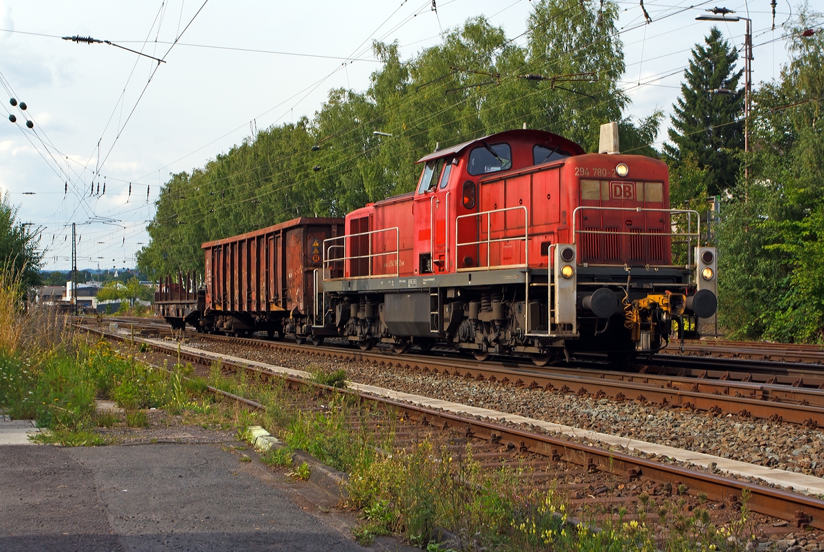 294 780-2 (V 90 remotorisiert) der DB Schenker Rail Deutschland AG kommt, am 29.08.2013 mit einem kurzem Güterzug in Kreuztal an.