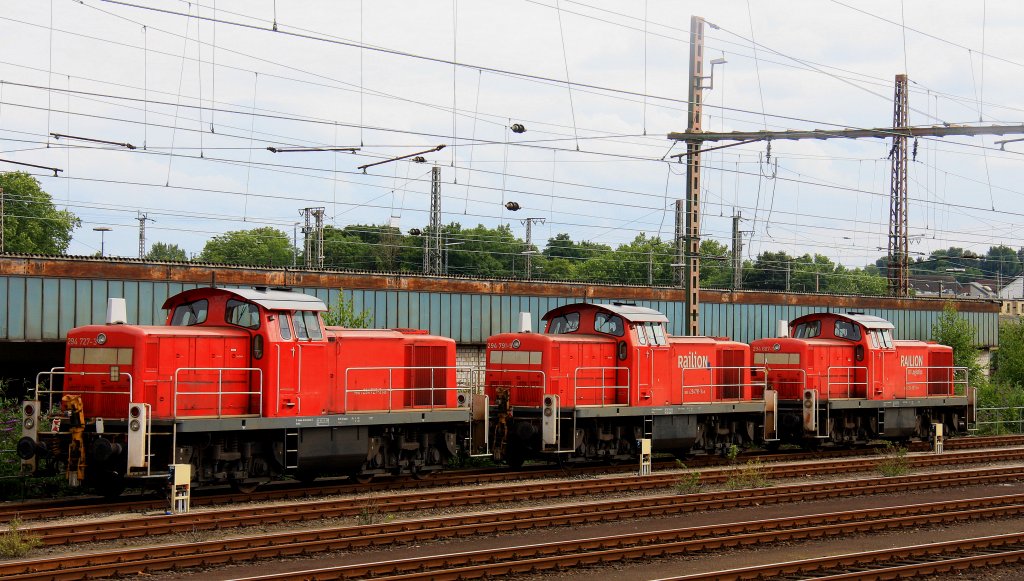 294 727-3, 294 791-9 von Railion 294 667-1 mit einer Deutschlandfahne auch von Railion stehen in Wanne-Eickel-HBF bei Sonne am 21.7.2012.