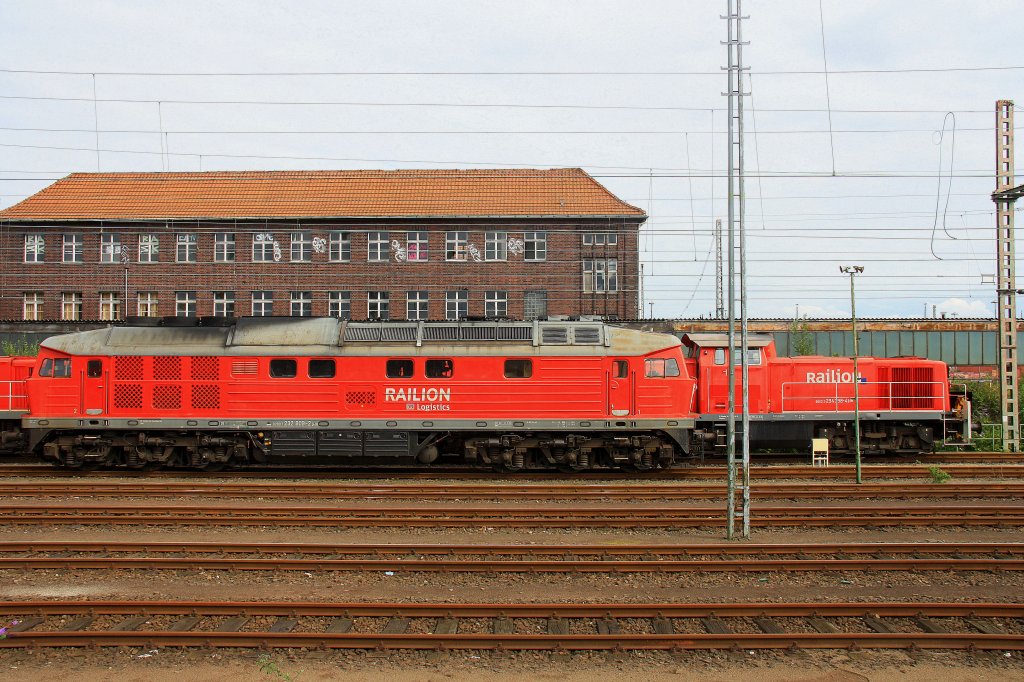 Im Vordergrund 232 909-2 von Railion, dahinter steht 294 798-4 auch von Railion stehen in Wanne-Eickel-HBF bei schönem Sonnenschein am 21.7.2012.