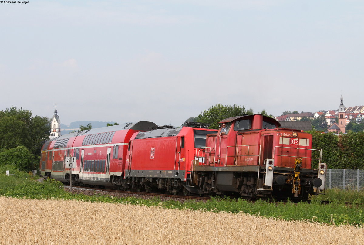 294 843-8 und 146 213-4 (kalt) mit dem Lr 79987(Freiburg(Brsg)Hbf-Konstanz) bei Lauchringen 8.7.19