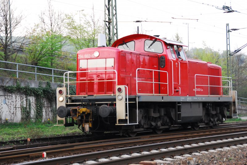 Die 294 882-6 beim verlassen des begehbaren Bereich des Bahnhof Bielefeld-Brackwede am Abend des 16.04.2009. Hier ist sie auf dem Weg ins nächtliche Quartier auf einem Nebengleis. Kurz vorher scheint die Maschine nicht nur gewaschen sondern bis ins kleinste Details poliert worden zu sein. Selten habe ich eine Lok so sauber gesehen.