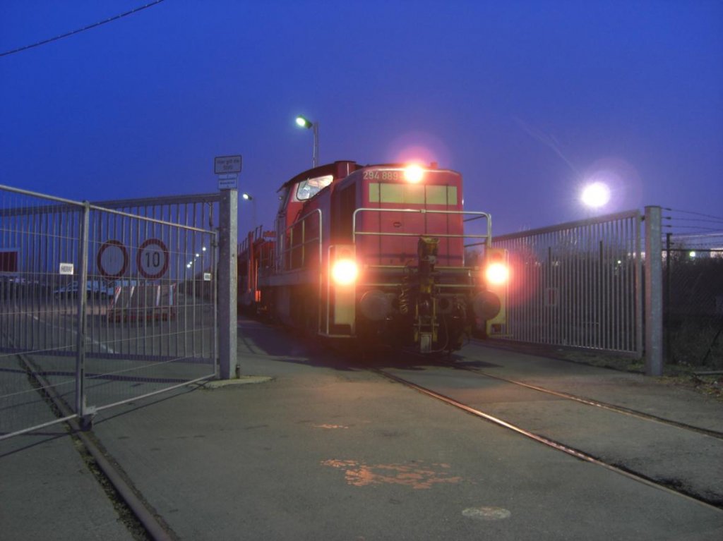 Am 25.02.09 steht 294 889-1, um 05:38, in der Autoverladung Dodendorf, mit einem nicht gerade kurzen Zug. Die Maschine ist zuvor Lz von Magdeburg Hbf gekommen, nur um die leeren offenen Doppelstockgepäckwagen abzuholen. Phillip Brandt