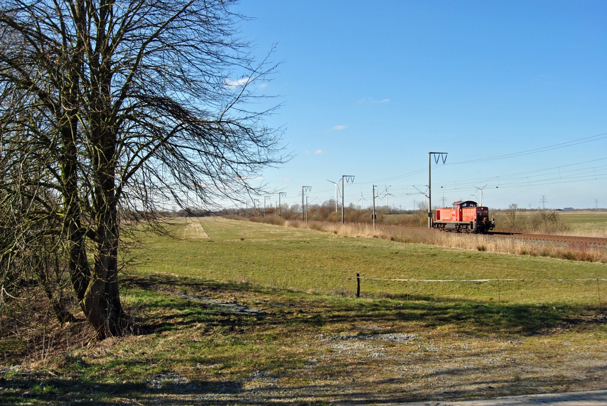 295 094-7 fuhr am 13.03.2015 von Emden nach Leer, hier bei Petkum.