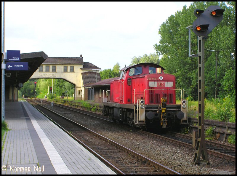295 094-7 wartet in Sande Bahnhof nach getaner Arbeit auf neue Aufgaben.31-07-2009