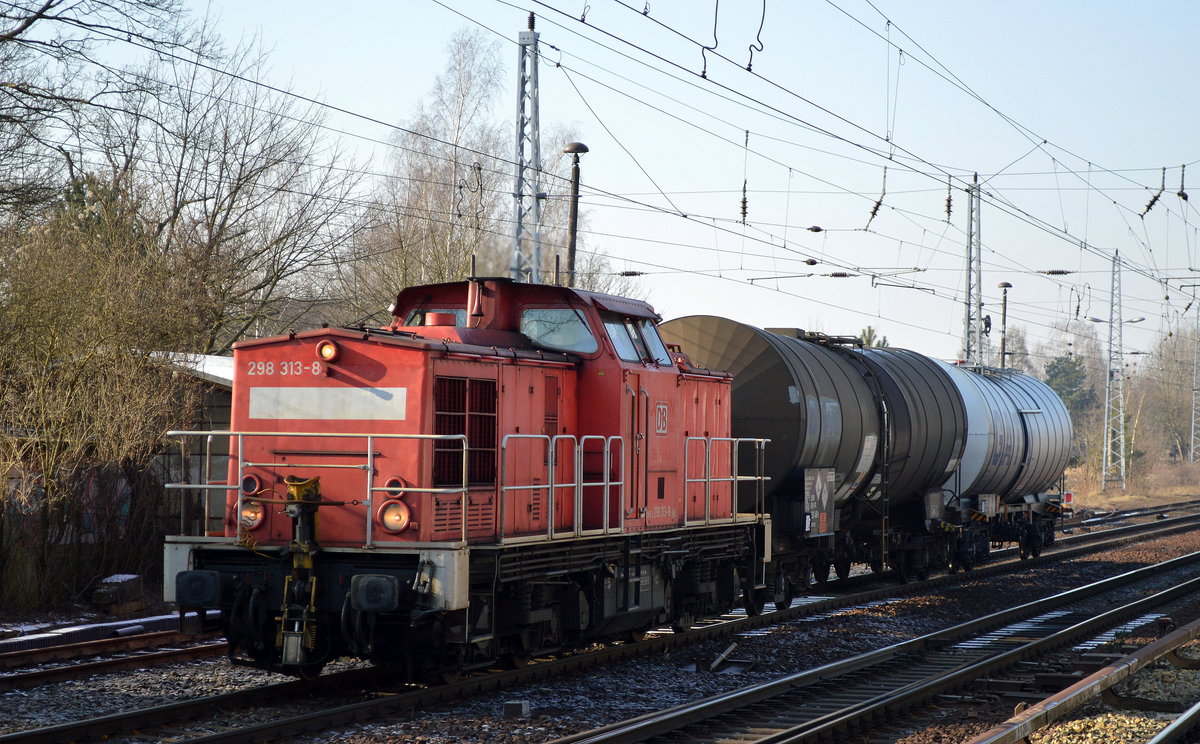 DB Cargo AG (D) mit "298 313-8" [NVR-Nummer: 98 80 3298 313-8 D-DB] und gemischten Übergabezug Richtung Rbf. Seddin am 02.03.21 Durchfahrt BF. Flughafen BER Terminal 5. Lothar Stöckmann