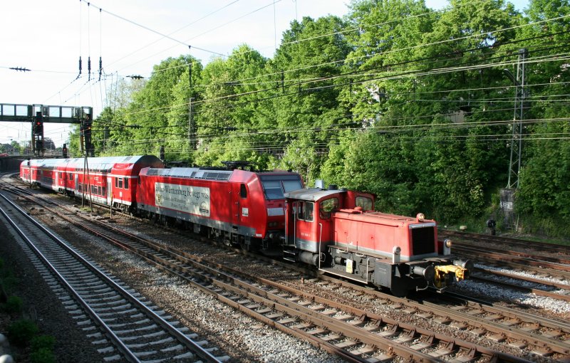 DB 335 030-3 mit einem Regionalexpress (DB 146 109-4) am 9.5.2008 bei Rangierarbeiten in Offenburg.