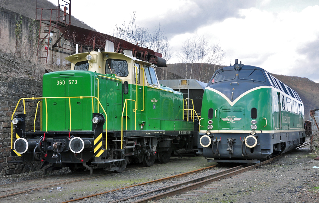 360 573-0 (Nr. D 6 der B.E.G.) und V 220 in Brohl 02.04.2010