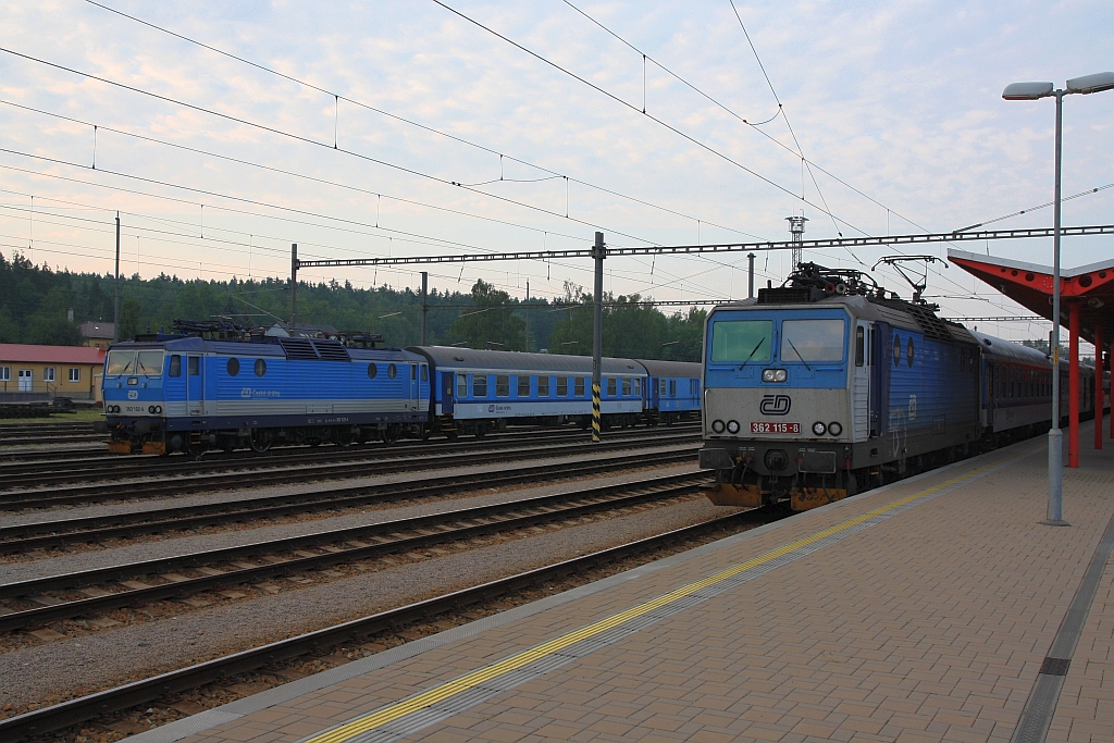 151 014-8 bei der Einfahrt in Ústí nad Labem am 24.08.14. Daneben steht 362 115-8 die den Zug dann nach Cheb bringt. Foto vom Bahnsteig! Alexander Hertel