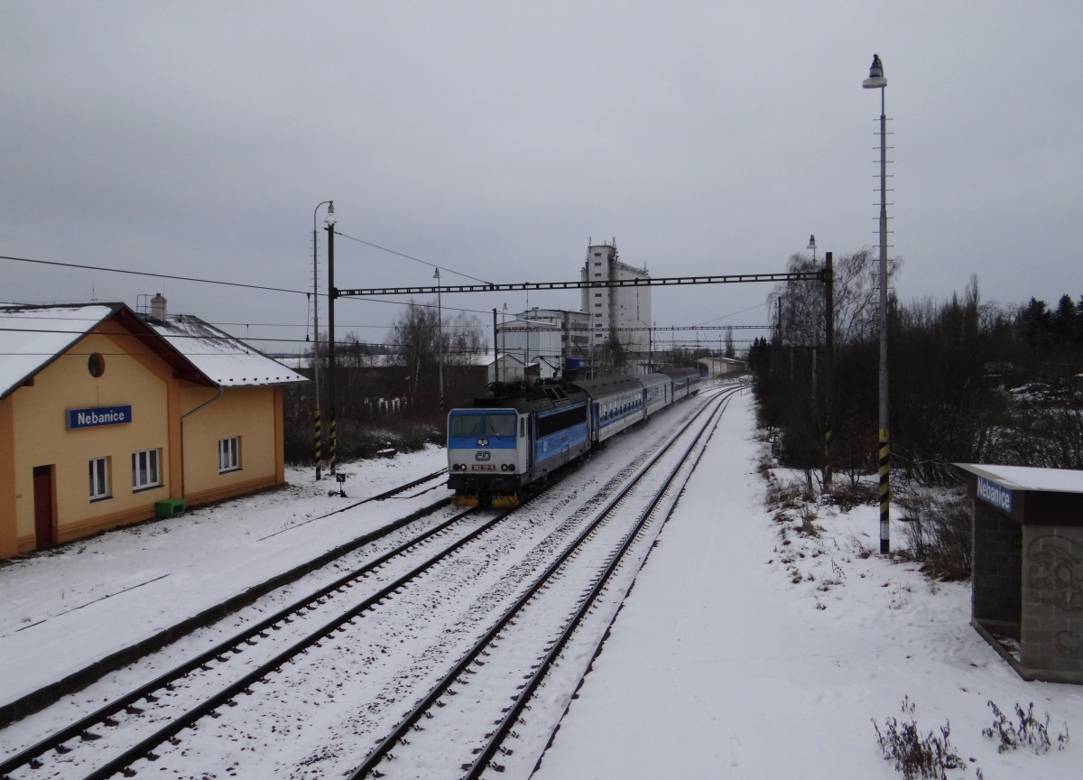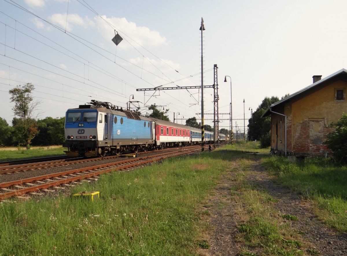 362 131-5 mit einem Schnellzug in Tršnice am 07.07.15.