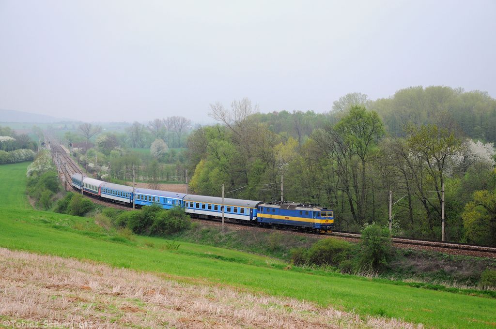 362 158 (CZ-CD 91 54 7 362 158-8) mit R 679 von Praha-Smíchov nach Brno hl.n. am 29.04.2013 bei Třebešice