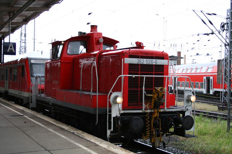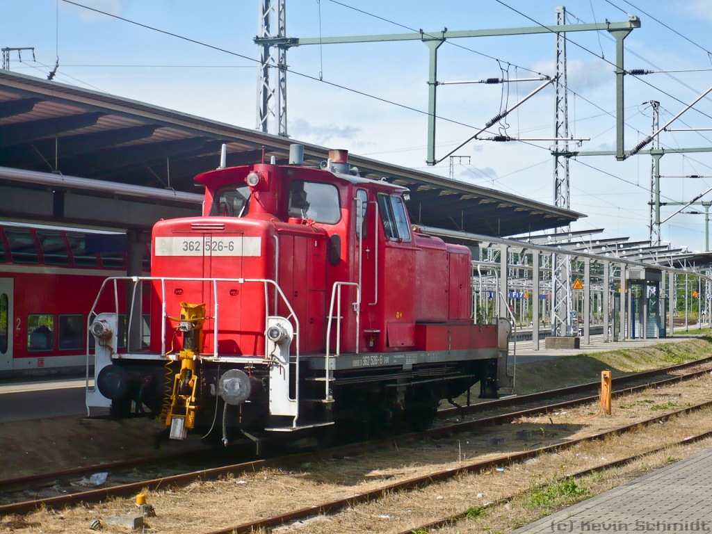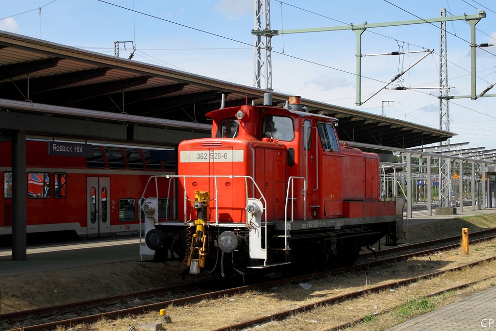 Tag 1: Kurz vor 13:00 Uhr in Rostock Hbf angekommen entdeckten wir die 362 526-6 auf einem der Abstellgleise an den Bahnsteigen.