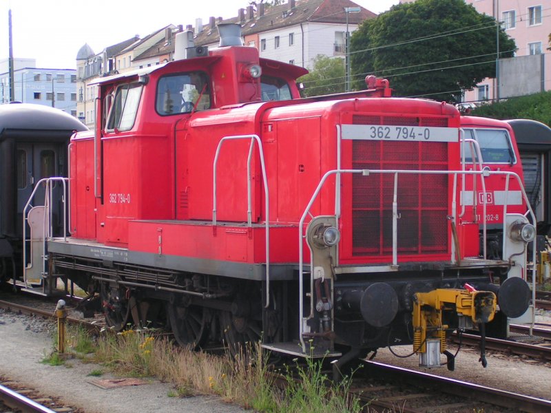 362 794-0 wartet am trüben Freitagmorgen auf ihre nächste Verschubaufgabe im Augsburger Hbf.
