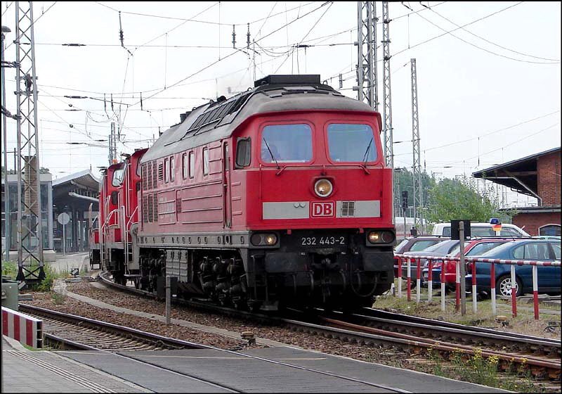 Mini-Lokzug - 232 443-2 zieht 362 900-3 & 363 218-9 in Richtung Rostock.  (Stralsund am 24.06.06)