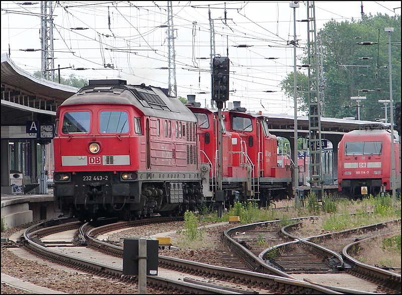 Mini-Lokzug - 232 443-2 zieht 362 900-3 & 363 218-9 in Richtung Rostock. (Stralsund am 24.06.06)