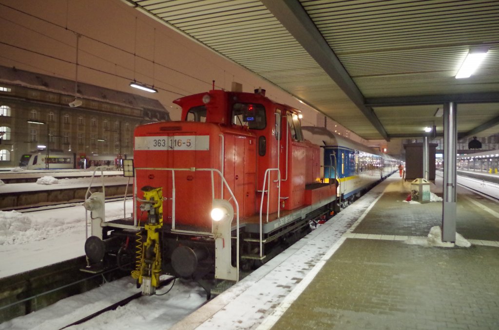 Am 20.06.2014 hatte die 363 116-5 die Aufgabe einige Autowagen vom DB Autozug Terminal in Neu Isenburg an den AZ 1350 zu rangieren. Hier sieht man 363 116-5 am Bahnsteig in Neu Isenburg. Tobias Schmidt