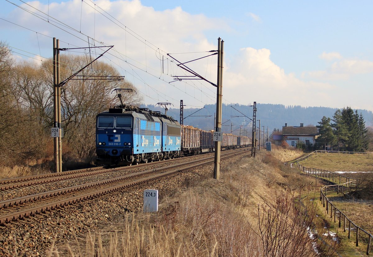 Da vom 06.-13.11.16 im Elbtal die Strecke gesperrt war. Fuhren auch einige Züge ab Ústí nad Labem Richtung Cheb. Hier 363 518-2 und 363 xxx am 10.11.16 in Tršnice. Alexander Hertel