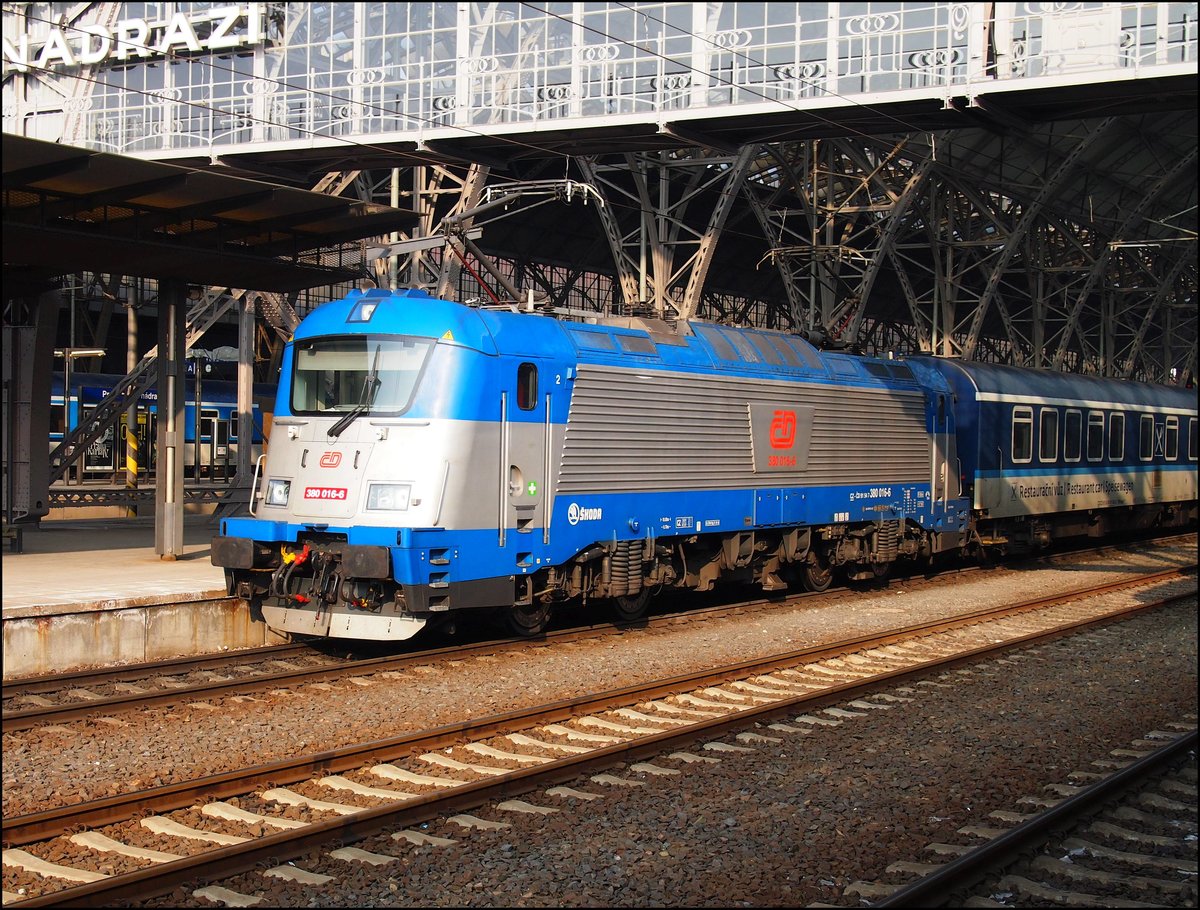 ČD 380 016-6 mit dem EC 277 "Metropolitan" nach Budapest-Nyugati, am 08.06.2019 in Praha hl.n..