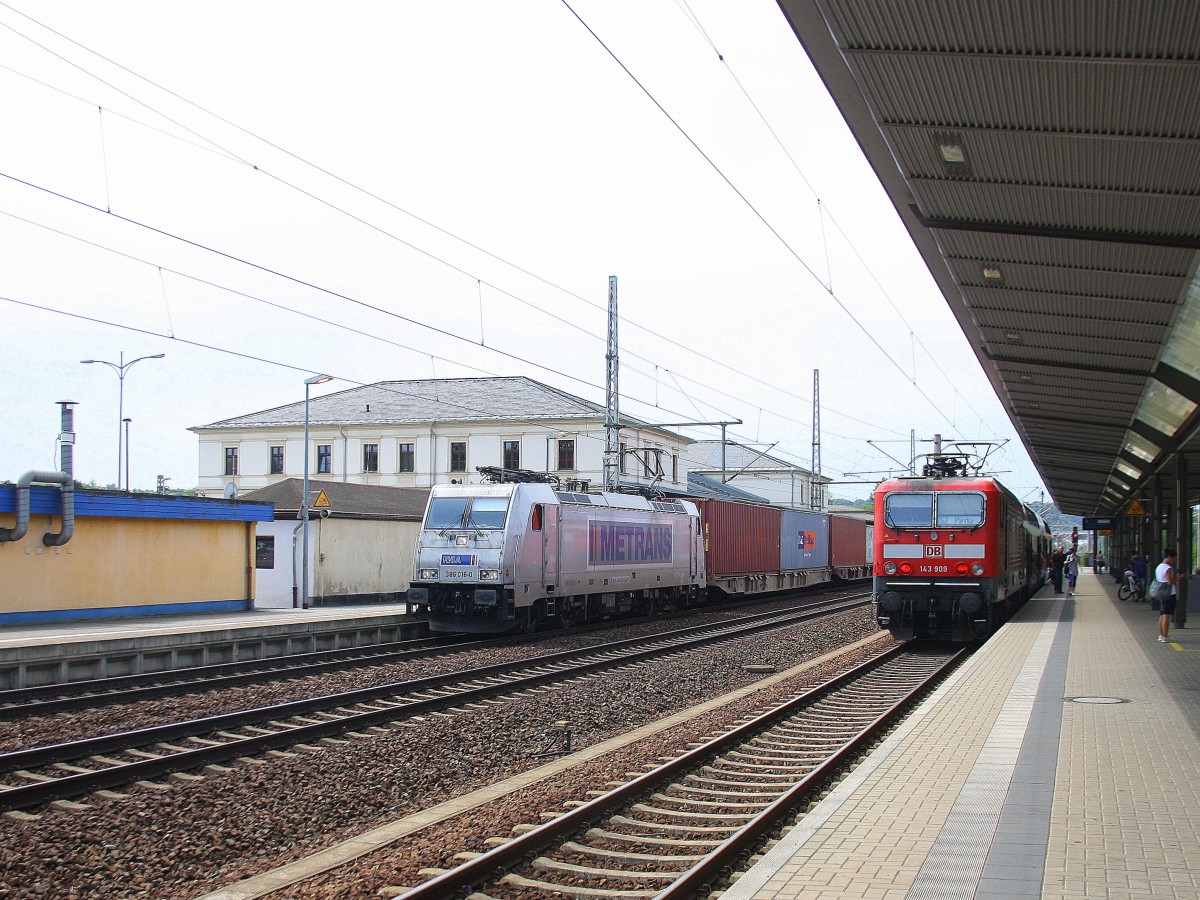 METRANS Rail s.r.o., Praha [CZ] mit  386 016-0  [NVR-Nummer: 91 54 7386 016-0 CZ-MT] und Containerzug am 15.06.20 Bf. Saarmund.