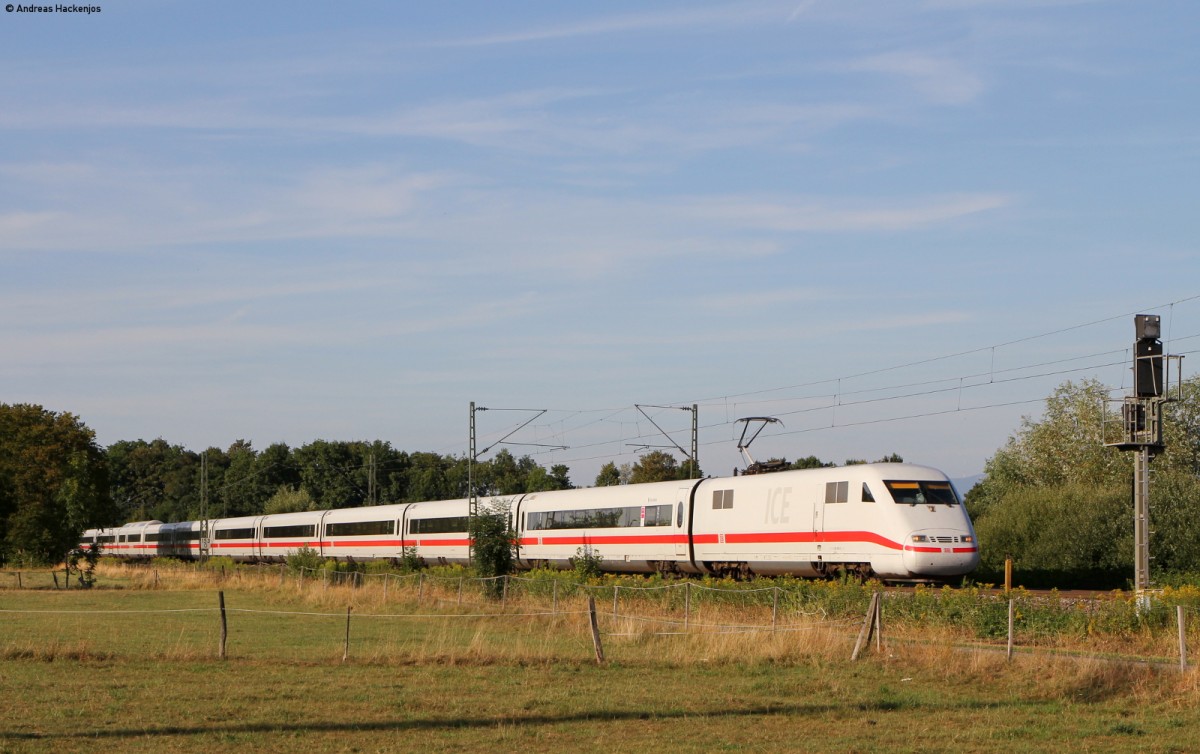 Nachschuss auf 401 081-5 (Tz 181 "Interlaken") bei Hohenthurm. 🧰 DB Fernverkehr 🚝 ICE 704 (Linie 18) München Hbf–Hamburg-Altona [+15] 🕓 11.8.2023 | 19:27 Uhr