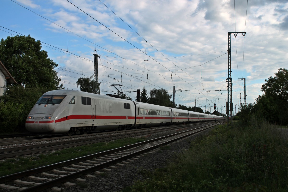 Nachschuss auf 401 081-5, als dieser am späten Nachmittag des 02.06.2020 als ICE 376 (Interlaken Ost - Frankfurt (Main) Hbf) südlich von Auggen über die KBS 702 durchs Markgräflerland in Richtung Müllheim (Baden) fuhr.