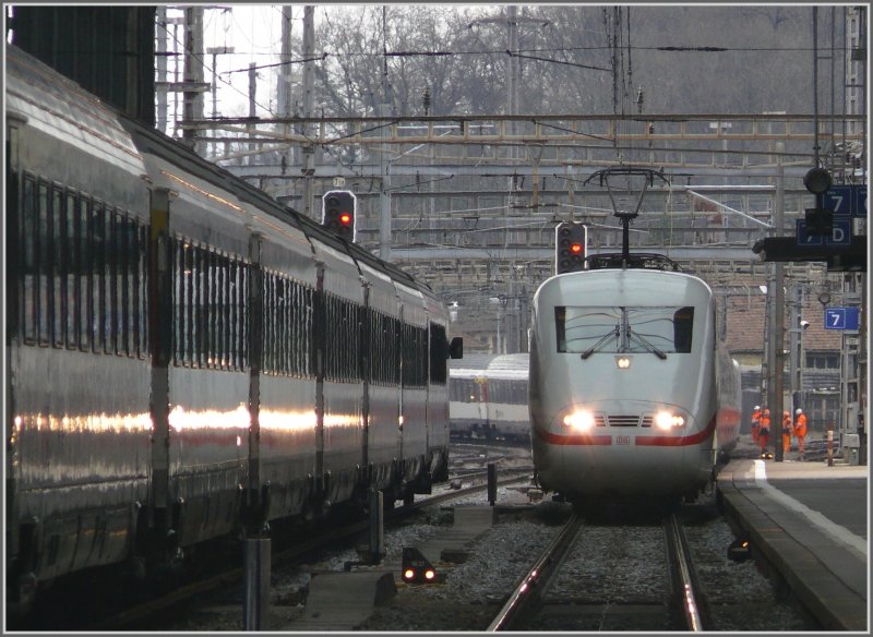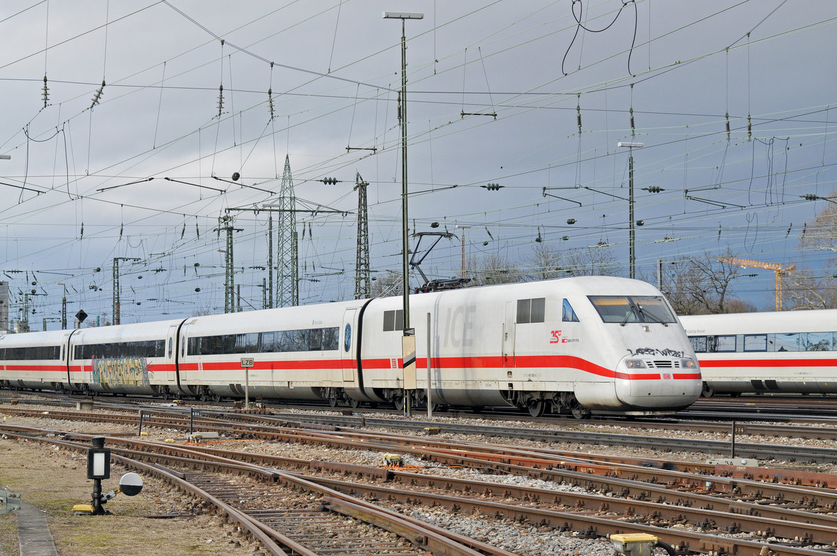 ICE 401 081-5 fährt beim Badischen Bahnhof ein. Die Aufnahme stammt vom 18.01.2018.