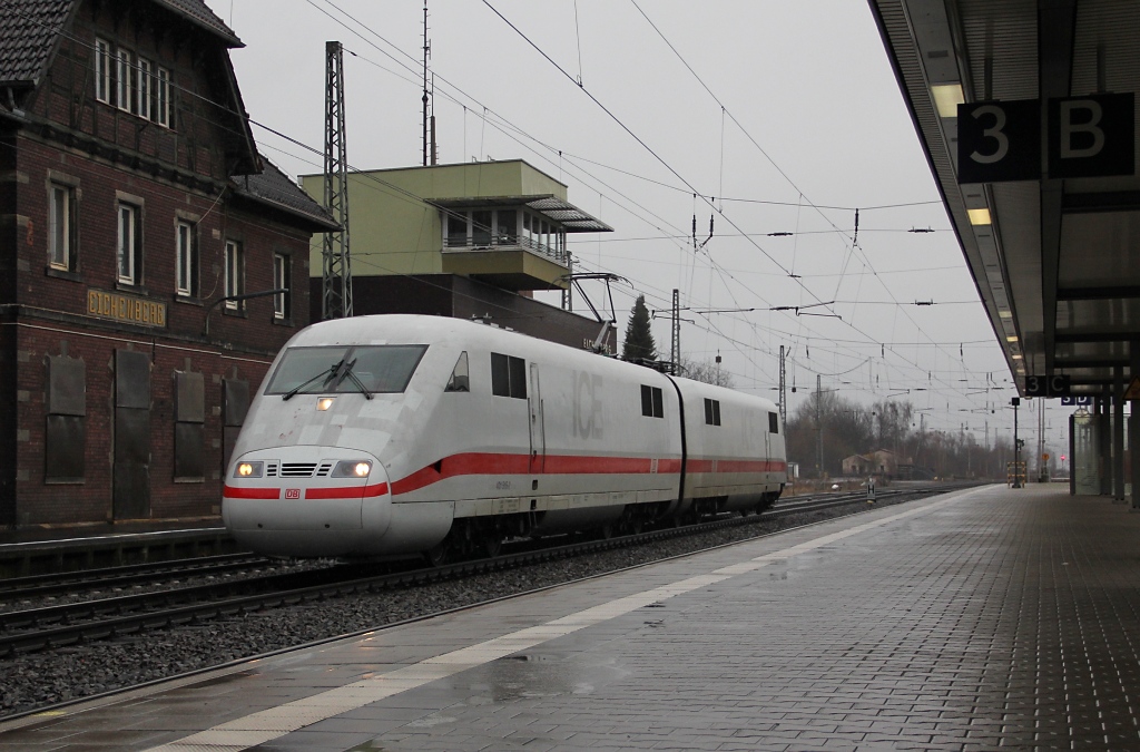 Kurzzug. Die ICE Triebköpfe 401 515-2 mit einem weiteren, dessen Nummer ich leider nicht mehr weiß, befanden sich am 22.01.2012 auf Überführungsfahrt in Richtung Süden. Aufgenommen in Eichenberg... Jens Baumhauer