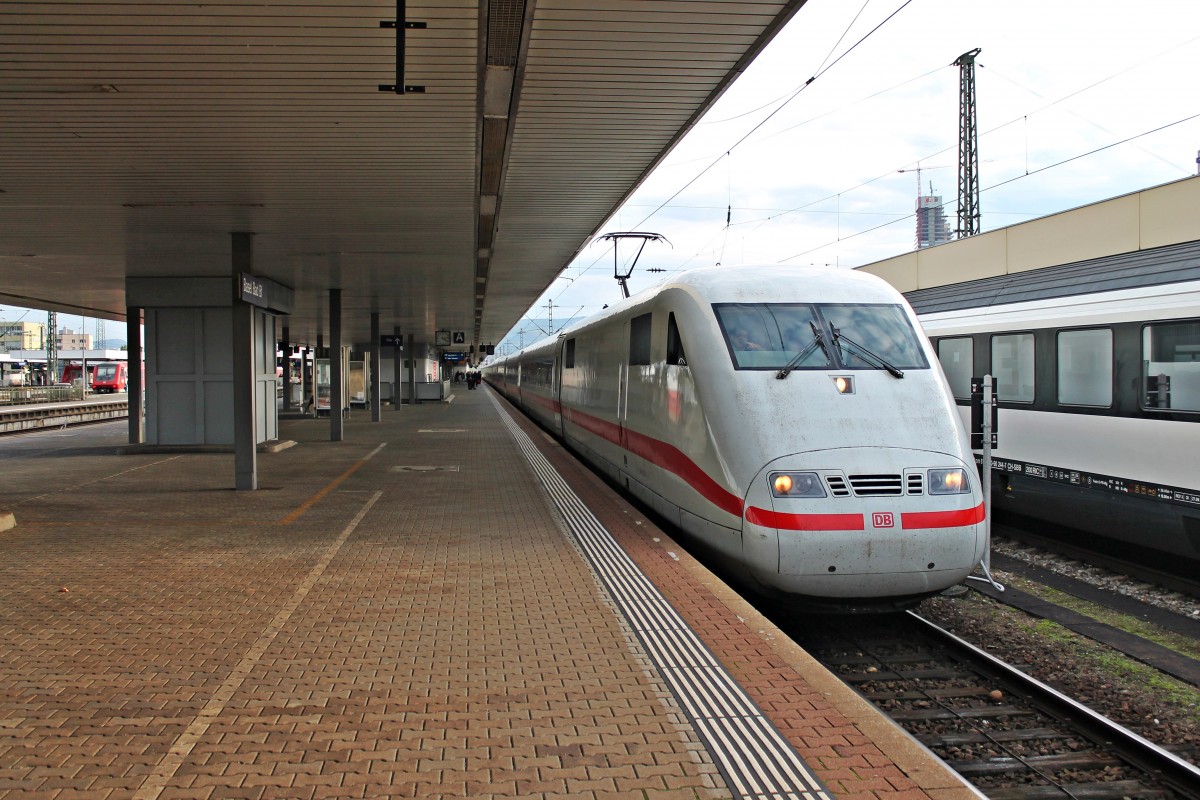 401 515-2 als umgeleiteter ICE 693 (Linie 11) von Berlin Hbf (tief) nach Stuttgart Hbf durchfährt den Hp Leipzig Messe auf der Neubaustrecke Erfurt–Leipzig/Halle (KBS 580). [24.3.2018 | 16:38 Uhr] Clemens Kral