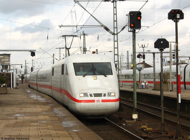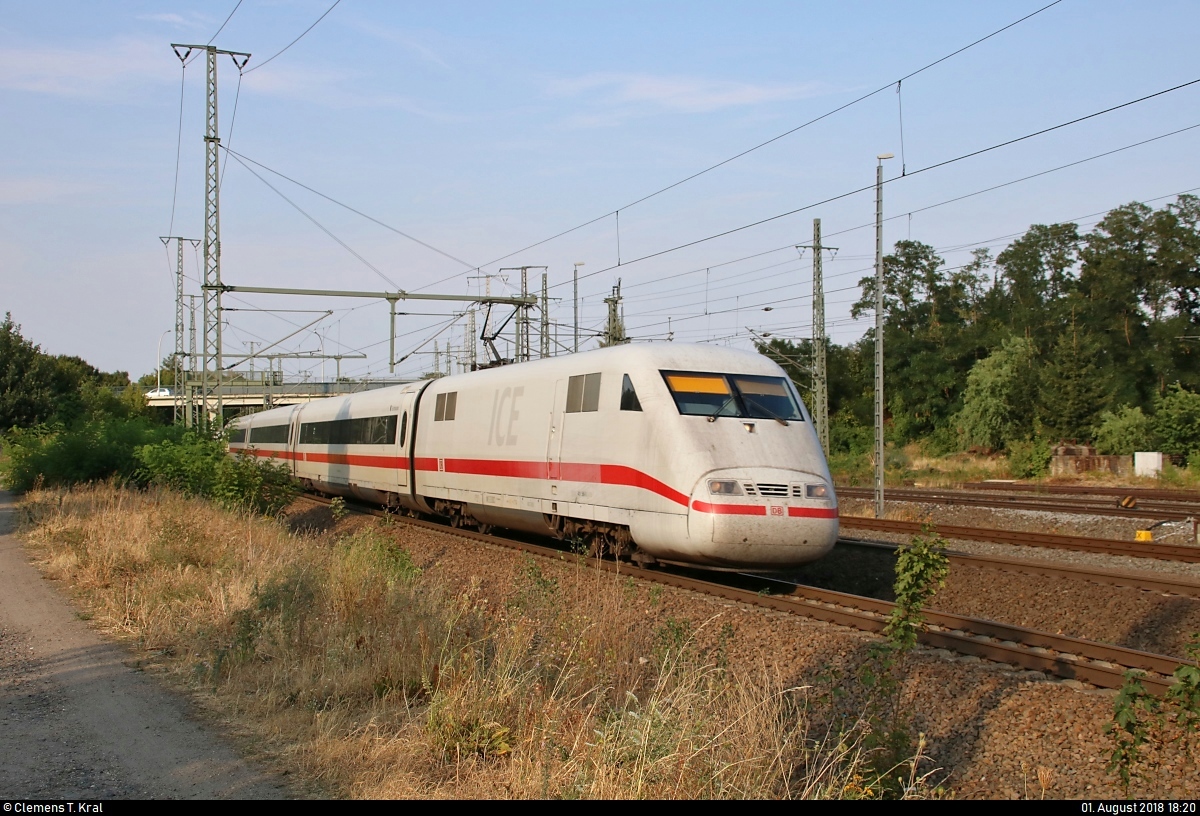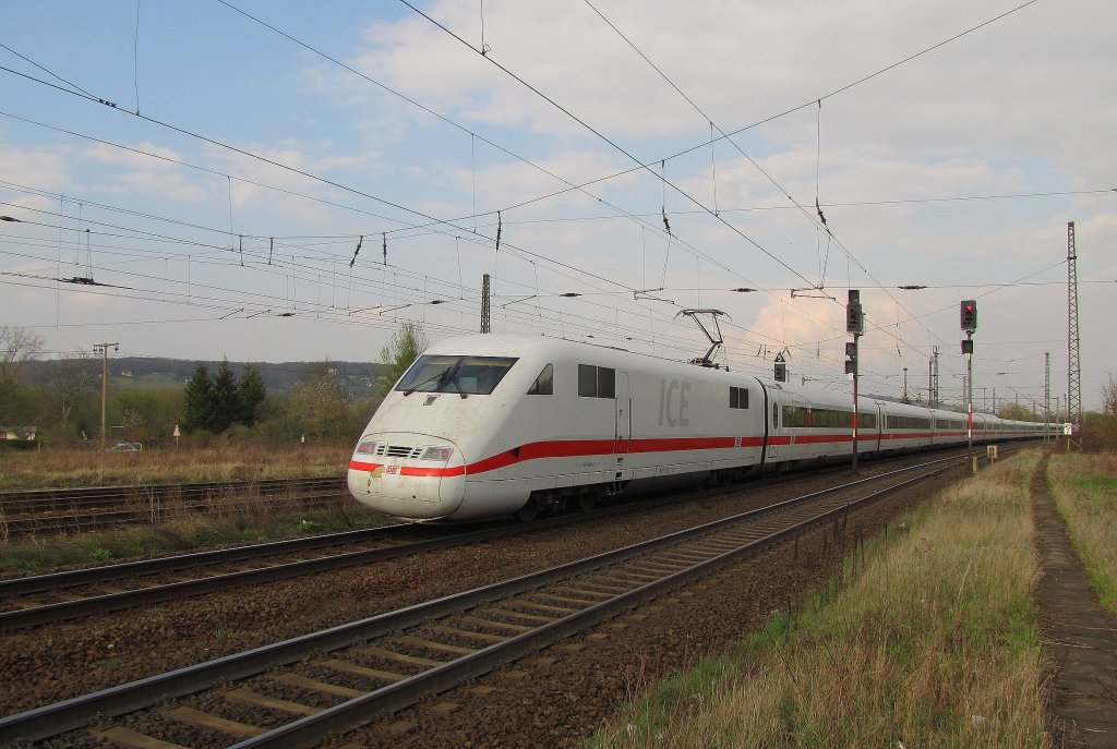 401 566-5 (Tz 166 "Gelnhausen") als ICE 801 (Linie 18) von Kiel Hbf nach München Hbf durchfährt Lutherstadt Wittenberg Hbf auf Gleis 2.