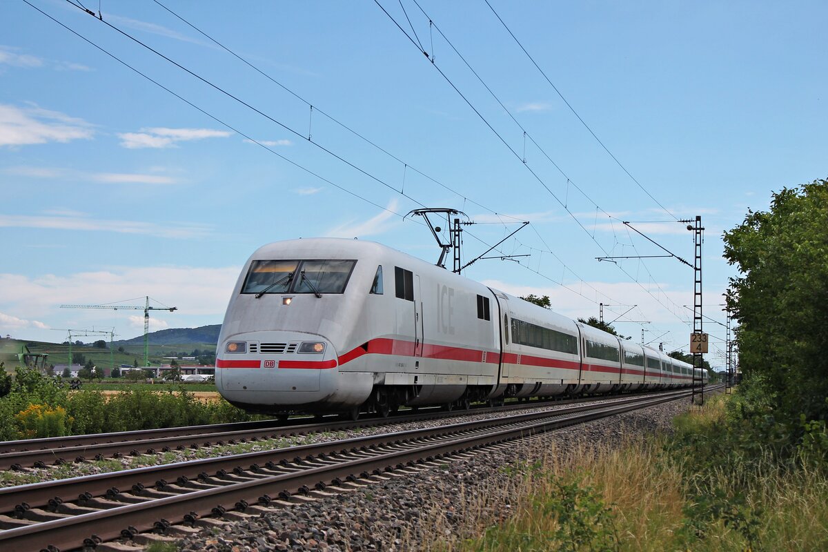 Als ICE 274 (Basel SBB - Berlin Hbf) fuhr am Nachmittag des 08.07.2020 der 401 566-5 "Gelnhausen" nördlich von Hügelheim über die Rheintalbahn durchs Markgräflerland in Richtung Buggingen. Tobias Schmidt