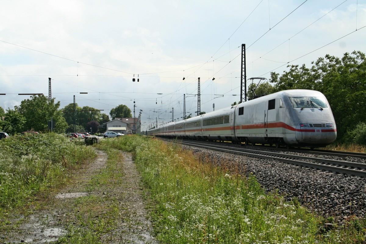 Nachschuss auf 401 076-5/401 574-9 "Zürich", als diese am Morgen des 09.07.2016 auf dem Weg von der Schweiz nach Norddeutschland waren, als sie bei Hügelheim gen Freiburg (Breisgau) fuhr. 401 076-5 war Ersatzweise an der Garnitur des Triebzuges 74, da sich 401 074-0 zum Zeitpunkt der Aufnahme in der Werkstatt war.