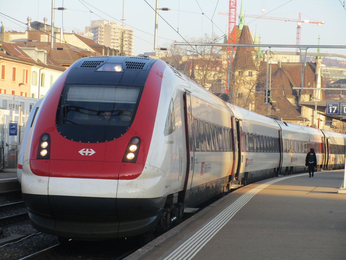 Am 15. Februar 2017 fuhr der ICN nach Aarau–Olten–Solothurn–Biel/Bienne–Genève Aéroport. Auf Gleis 17 im Zürich HB bereitet der 2-teiliger ICN auf die lange Fahrt zum Genfer Flughafen, dass gerade in der Nähe zur französisch-schweizer Grenze liegt. Geführt wurde der 2-teiliger ICN von der RABDe 500 023  Charles Ferdinand Ramuz  und die SBB RABDe 500 043  Harald Szeemann  war hinter der RABDe 500 023. Vor der Abfahrt musste die Frontscheibe der RABDe 500 023 gründlich geputzt werden. Auf Gleis 18 (links nebendran)stand auch um diese Zeit der ICE 401 574-9  Zürich .