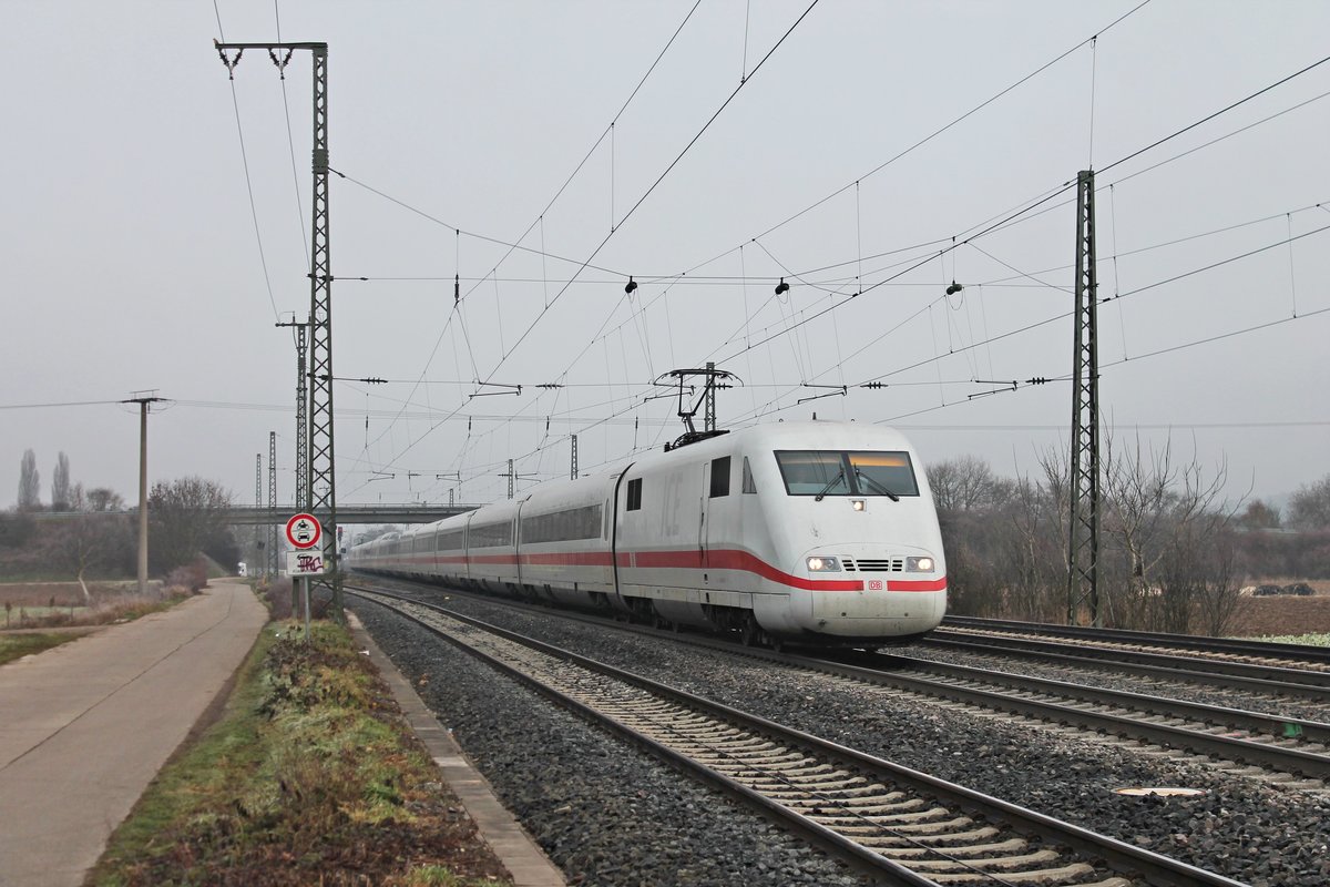Nachschuss auf 401 574-9/401 075-7 "Zürich", als dieser auf dem Weg von Norddeutschland in die Schweiz war, am 20.12.2016 bei der durch vom Bahnhof von Müllheim (Baden).