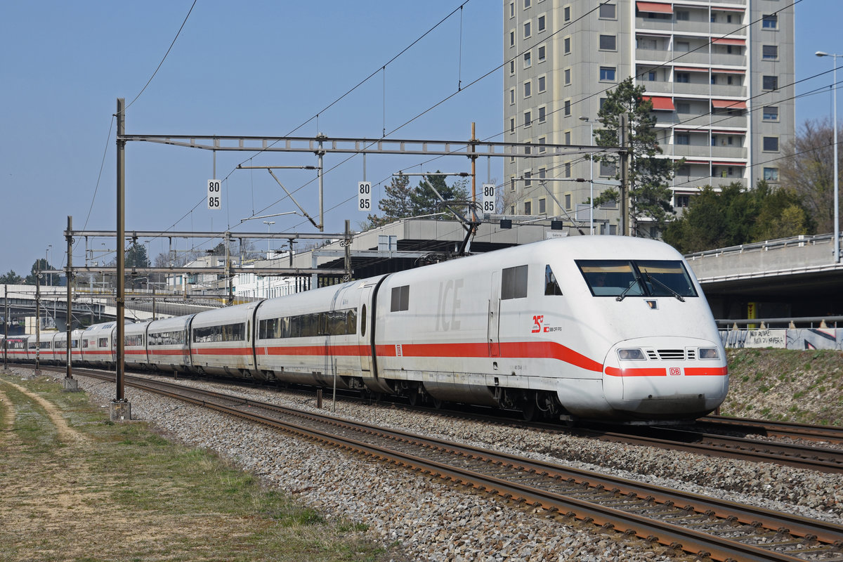 ICE 401 574-9 fährt Richtung Bahnhof Muttenz. Die Aufnahme stammt vom 24.03.2019.