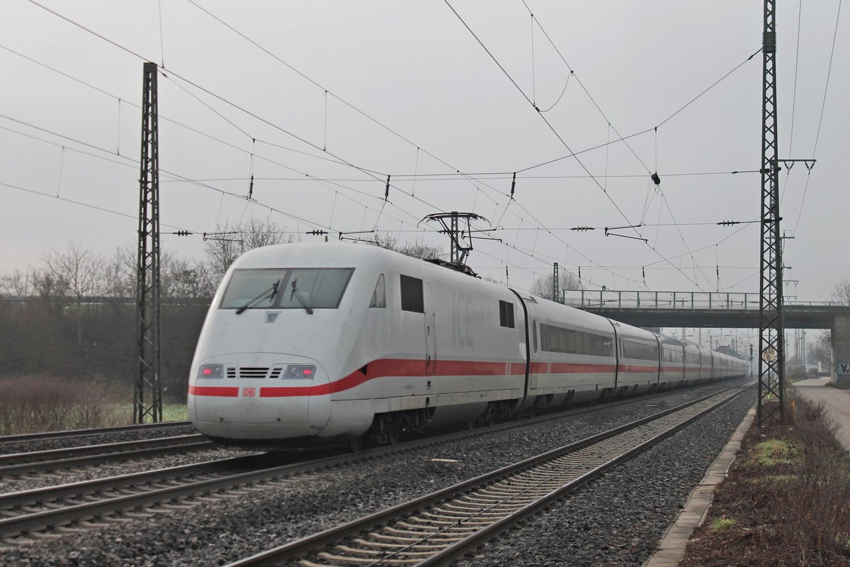 Am 09.01.2016 war ICE-Tz 0174  Zürich  als ICE 76 von Zürich nach Hamburg unterwegs. Hier zu sehen ist der  nicht zählende Kopf  401 574-9 bei der Ausfahrt aus Hannover