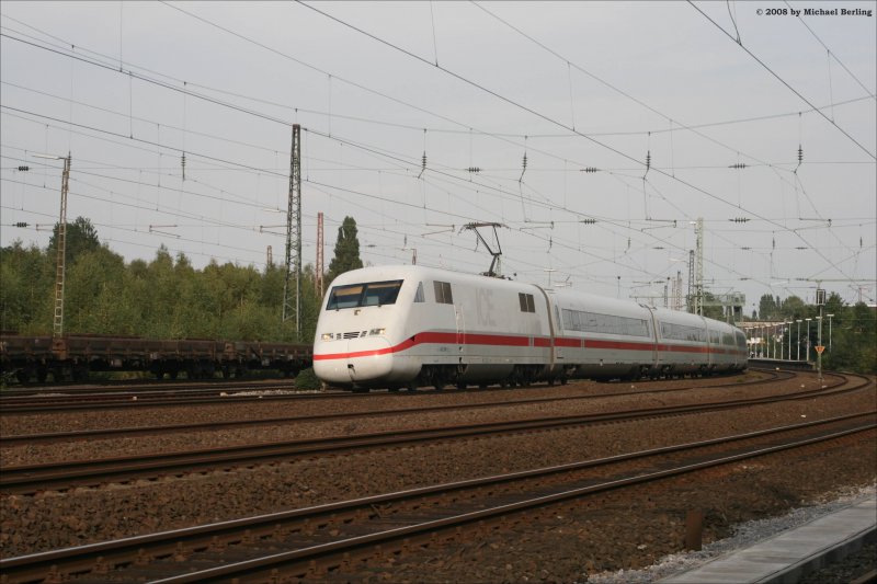 402 009-5 als ICE 548 nach Köln/Bonn Flughafen legt sich in die Ehrenfelder Kurve in Bochum. 19.9.08